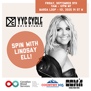 Country 105 invites you to get pumped-up and sweat it out with Lindsay Ell for a great cause! 100% of proceeds will be donated to the Canadian Blood Society. Even if you can’t join our YYC Cycle class – you can donate blood under Canadian Country Music Association! It’s in you to give!