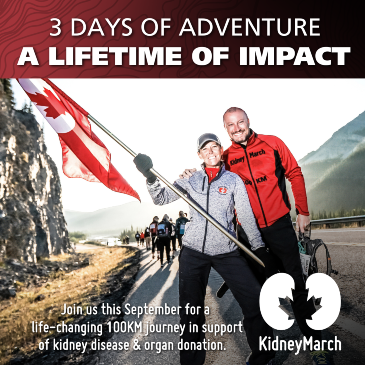 It’s not every day that ordinary people get to put a life-saving cause on the map. But today is exactly that kind of day. Walk the farthest you have ever walked and raise the most you have ever raised in the fight against kidney disease and for organ donation. We invite you to join us for an unforgettable journey and challenge you to make a big impact. Kidney March is nothing like your average walkathon. We’re walking 100 kilometres over three days from Kananaskis to Calgary.