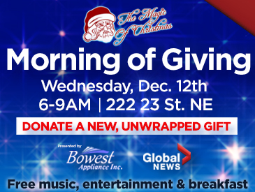 Global Calgary is collecting gifts for local families in need on Wednesday, Dec. 12 from 6:00 a.m. – 9:00 a.m. as part of our third annual Morning of Giving!