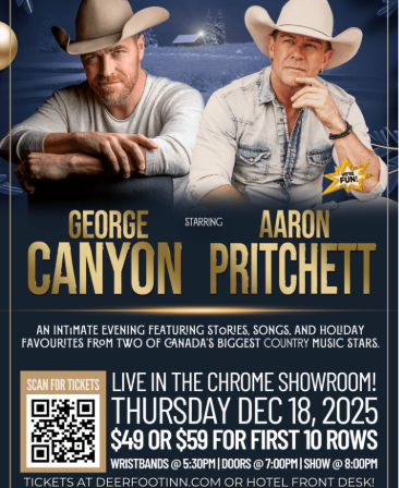 Deerfoot Inn & Casino, 1000, 11500 – 35 Street SE, Calgary, AB, T2Z 3W4 Country 105 presents A Coast-to-Coast Cowboy Christmas – George Canyon & Aaron Pritchett at Deerfoot Inn & Casino on December 18!