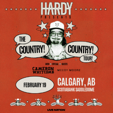 Scotiabank Saddledome, 555 Saddledome Rise SE, Calgary, AB, T2G 2W1 THE COUNTRY! COUNTRY! TOUR! HARDY is coming to Scotiabank Saddledome on February 19th with Cameron Whitcomb and McCoy Moore! Tickets on sale this Friday, Oct 10th @ 10AM local.