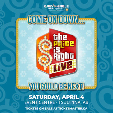 The Grey Eagle Resort & Casino, 3777 Grey Eagle Dr, Calgary, AB, T3E 3X8 Country 105 is excited to welcome The Price is Right Live! to the Event Centre at Grey Eagle Resort & Casino on Saturday, April 4, 2026, with two showtimes at 1:00 PM and 8:00 PM! Get tickets for the 1 PM show: https://www.ticketmaster.ca/event/110063329AA85B1D Get tickets for the 8 PM show: https://www.ticketmaster.ca/event/1100633299F05A87