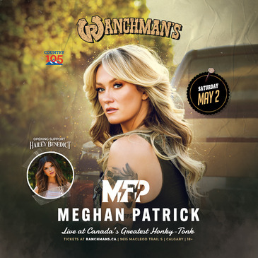 Ranchman's, 9615 Macleod Trail S, Calgary, AB Country 105presents Meghan Patrick Golden Child Tour at Ranchman’s on May 2, 2026! Ontario native, Nashville-based singer-songwriter Meghan Patrick is as real as they come. She playfully blends her tough-as-nails exterior with a casual, cool narrative – showing the world that women can be sexy, strong, intimate, and gritty. Whether it’s composing skillfully crafted songwriting […]