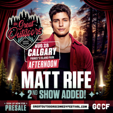 Prince’s Island Park, 698 Eau Claire Ave SW, Calgary Country 105 welcomes The Great Outdoors Comedy Festival to Prince’s Island Park August 28 – 30, 2026! Comedian/Actor/Producer/Writer/Author Matt Rife has cemented himself as one of biggest stand ups in the world through his top performing Netflix special and his remarkable engagement on social media where he has amassed over 39.4 million followers, and more […]