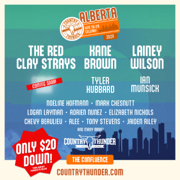 The Confluence Historic Site & Parkland Country 105 welcomes Country Thunder Alberta Calgary June 26 – 28 with these massive headliners! HEADLINERS The Red Clay Strays Kane Brown Lainey Wilson DIRECT SUPPORT Tyler Hubbard Ian Munsick One more coming soon SECONDARY ACTS Noeline Hofmann, Mark Chesnutt, Logan Layman, Adrien Nunez, Elizabeth Nichols, Chevy Beaulieu, Alee, Tony Stevens, Jaiden Riley, And more