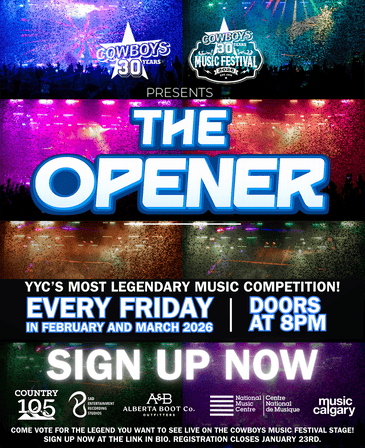 Cowboys Dance Hall THE OPENER IS BACK AND COYWOYS IS LOOKING FOR YYC’S NEXT BIG STAR Calling all Calgary artists.The city’s biggest live music competition is back at Cowboys Calgary, and one artist will walk away with a CMF30 Opening Spot on the Cowboys Music Festival stage. Think you’ve got what it takes?Submissions close January 23, 2026.Show YYC […]